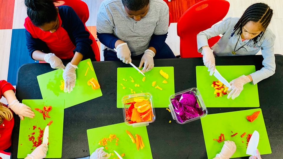 EAT360 grew to become our signature in-school nutrition education program, gaining momentum by building on the original Culinary Classroom model. With the support of SNAP-Ed, the EAT360 program provides community wellness to partner schools in Philadelphia by leading youth and caregiver cooking classes and promoting healthy environments through physical activity, school garden initiatives, and more.
