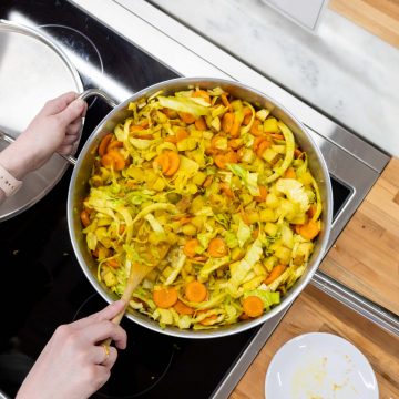 - Pour the vinaigrette over the vegetables and toss to coat and combine. Enjoy immediately.